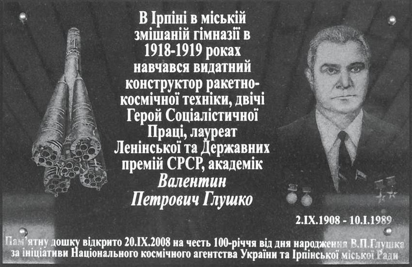 В Киеве семья жила в собственной квартире. Однако устроить детей среди учебного года в киевские гимназии Петру Леонтьевичу не удалось. Чтобы не делать перерывов в учёбе, пришлось их устроить учиться в тихий поселок городского типа Ирпень, расположенном в 9 километрах к северо-западу от Киева[8], в живописной местности Святошского уезда Киевской губернии на берегу речки Ирпень притока Днепра, где П.Л.Глушко стал членом исполкома. Так что Петр Леонтьевич вместе с детьми ездил на железной дороге в Ирпень. Дети в смешанную гимназию, отец – на службу[9].