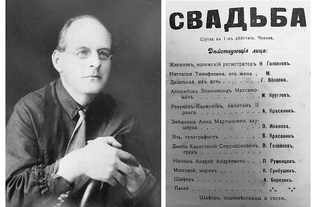На левой фотографии мой дедушка за два года до ареста. На правой – театральная афиша 1917 года. Среди исполнителей как мой дедушка (А. Красавин), так и его племянник (В. Красавин).
