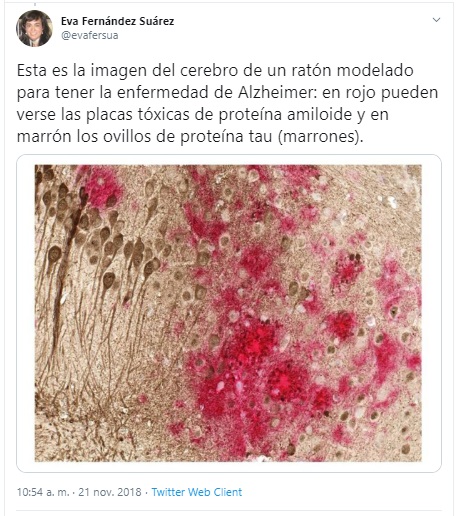 Traduzione Immagine 2: Questa è l’immagine di un cervello di un ratto modificato con Alzheimer: in rosso si possono osservare le placche tossiche della proteina amiloide e in marrone i grovigli di proteina Tau (marroni).