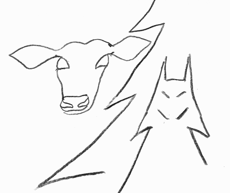 Волки появились так неожиданно, что телёнок даже не успел испугаться, просто остановился на их пути, хлопая большими пушистыми ресницами. Серая смерть стояла в двух шагах, принюхивалась, глядела холодными умными глазами сквозь него. Матёрый вожак помедлил с минуту, встряхнулся всем телом, а потом повёл стаю вдоль невидимой стены, окружавшей Алёшкин бор. Он чуял парное мясо и кровь совсем рядом, но не мог идти прямо на запах. Только вокруг.