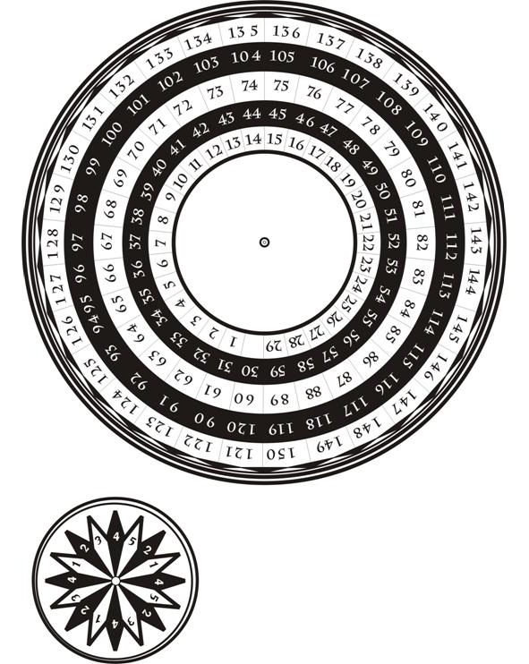 Каждая стрелка волчка (черная и белая) пронумерована. Допустим, если на какой-либо сегмент таблицы упала черная стрелка с белым номером 4, значит в 4-м (черном) сегменте и содержится псалом, который укажет ответ на ваш вопрос.
