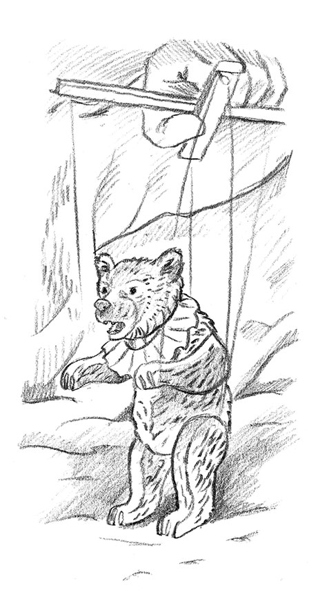 А затем торговец перестал вращать крестовиной – и медвежонок снова стал марионеткой, бессильно повисшей на верёвочках.