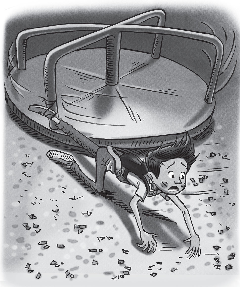 Проржавевшая, расшатанная карусель вращалась, точно пропеллер. Сэм пытался впиться пальцами в опилочный настил, но скорость уже приподняла мальчика над землей. Он бешено размахивал руками. Сэма кружило всё быстрее: он чувствовал, как ветер треплет его волосы.