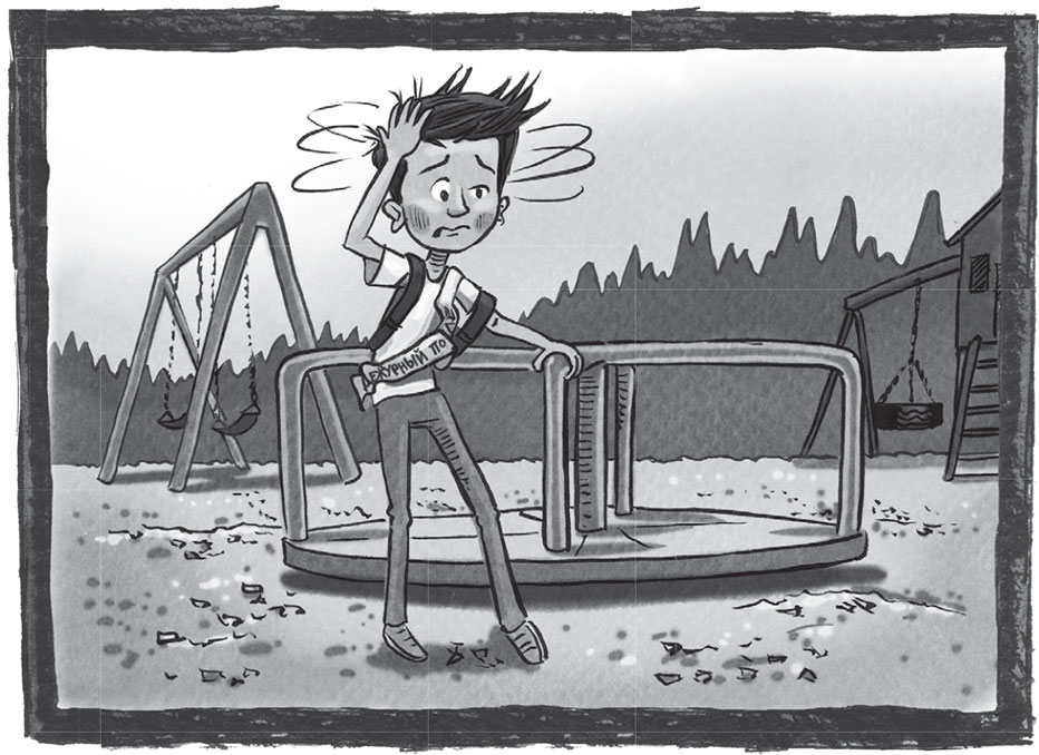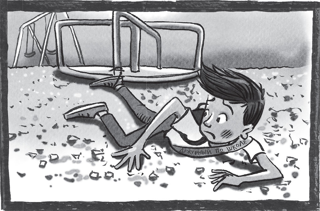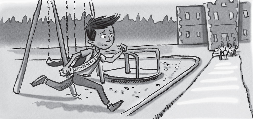 Он поскорее перекинул через плечо повязку дежурного и кинулся бежать по игровой площадке.