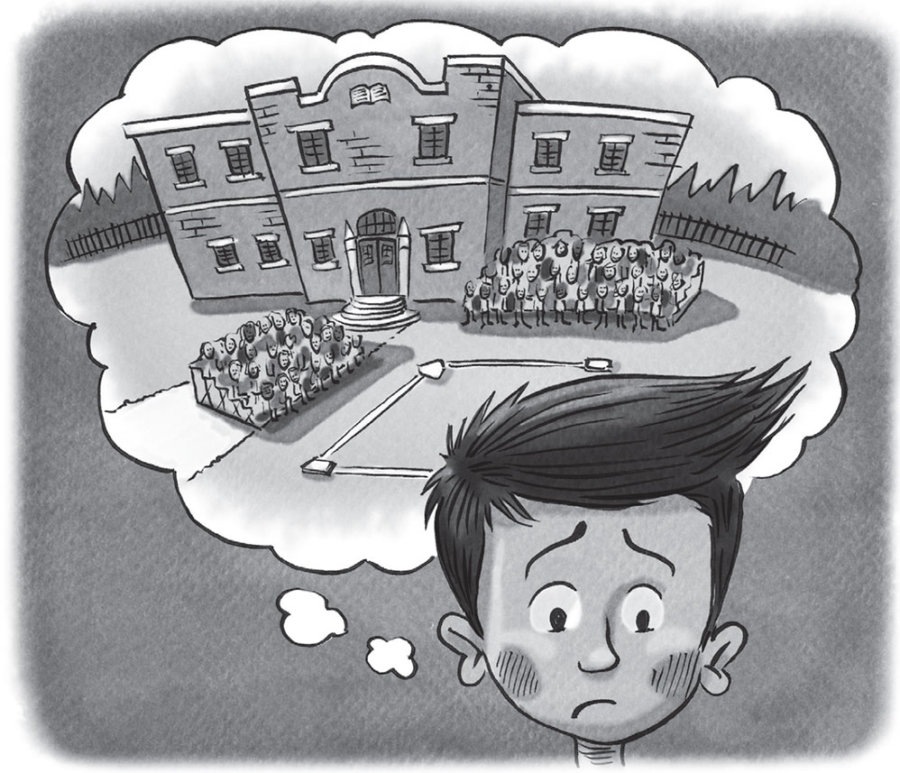 Сэм был сбит с толку, но ещё он опаздывал на урок! Он взлетел по ступеням и поспешил в здание.