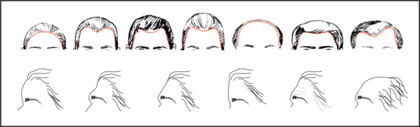 Наклон лба может быть различным относительно вертикали.