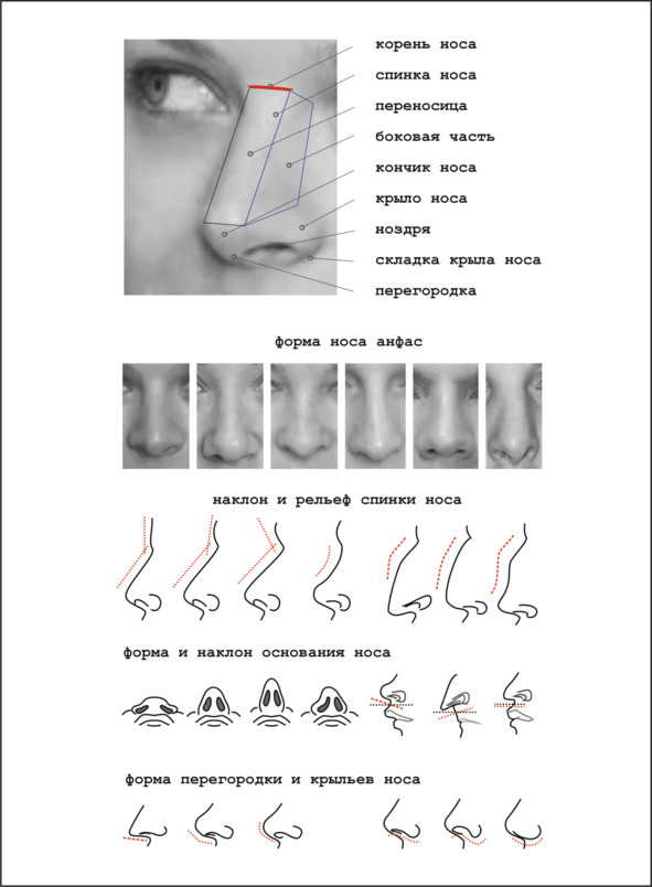 Кроме абсолютных и относительных размеров носа, не столь детально, как пластический хирург, но мы обязаны оценить каждую его часть.