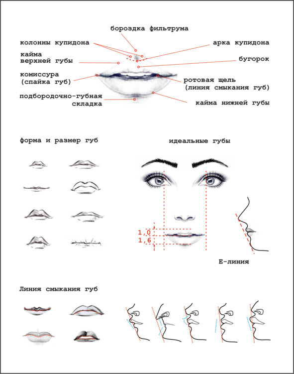 – расположение губ по высоте и их ширину (толщину);
