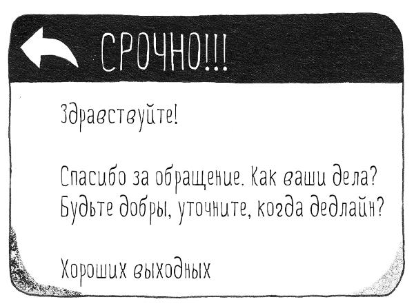 Прочесть мораль: «Вы пишете мне в субботу ночью, не здороваясь, не обращаясь ко мне по имени, не прощаясь, и при этом хотите…»