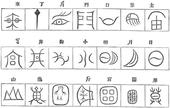 Существует лишь небольшой шаг между вырезанием фигуры мамонта или лошади и использованием их в качестве символов. Умножьте их, и вы получите ранний иероглифический письменный язык китайцев и египтян. Это не несправедливое предположение, что ни на большом расстоянии, ни во времени или пространстве, ни на протяжении нескольких поколений среди его собственных потомков, ни на расстоянии стольких наций среди его сверстников инициативная способность палеолитического дикаря была с пользой применена к коммуникации идеи, так же как и в более поздние времена, символический язык Kououen был развит или использовался среди ранних китайцев.90