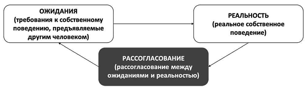 В обиде, как и в гневе, можно выделить три главных компонента: ваши ожидания и требования относительно поведения близкого человека, реальное его поведение и рассогласование между вашими надеждами и действительностью («муж должен был подарить мне цветы», «мой сын не должен был меня обманывать» и т. д. см. рис. 14).