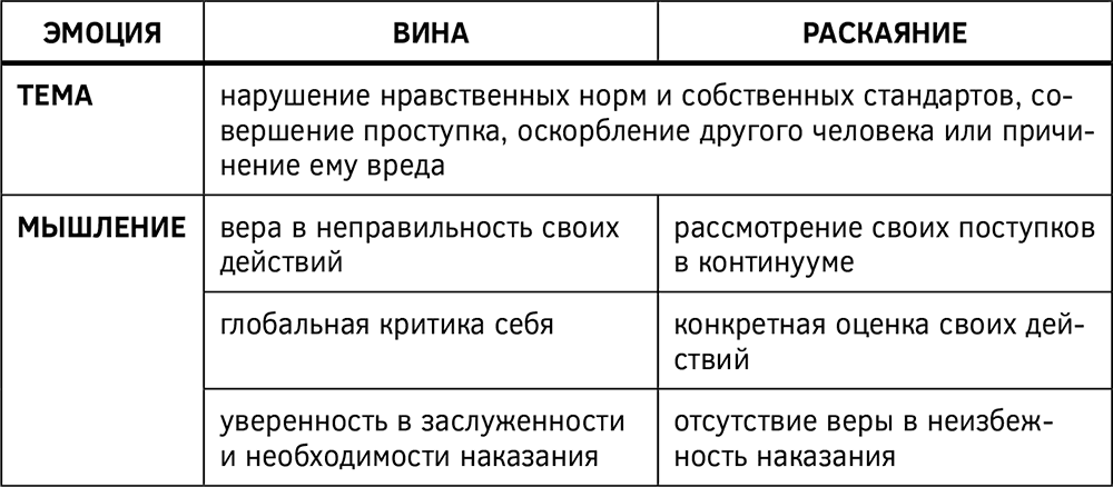 Таблица 7. Сравнительная характеристика вины и раскаяния