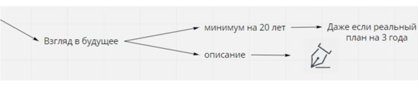 Стратегия всегда про большой срок, это не год, два, три. Учитывая скорость развития технологий в мире, стратегию можно строить лишь на пару лет вперед. Но это ограничивающая мысль. Стратегия должна быть на десятки лет. Например, сейчас в течение трёх лет развиваемся вот так, а потом может всё измениться. Но есть же примерные варианты изменений. Что мы будем делать, когда они наступят? Это часть стратегии – предугадать множество вариантов развития. Развитие должно просчитываться на 20—30 лет (при любых изменениях). Нужно смотреть на глобальные тренды и на то, что ваше действие изменит. Даже если у вас проект, который должен прожить три года, он, скорее всего, повлечет за собой какие-то изменения всей системы, которые отразятся на мире и на будущем. Так вот, стратегическое видение – это видение того, что произойдёт после того, как ваша компания закроется, реализовав свой проект через три года.