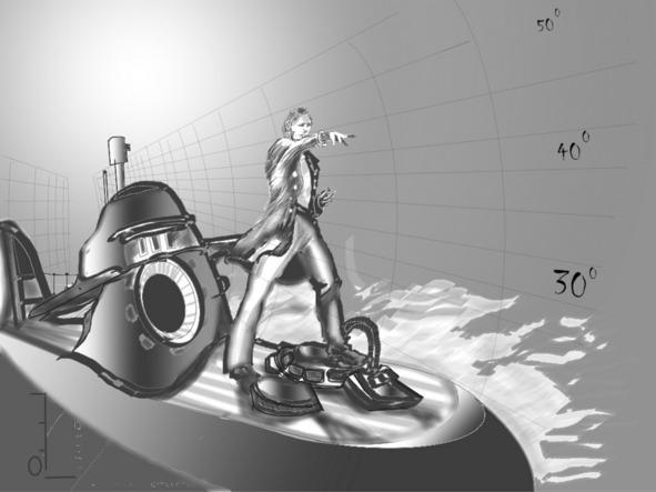 Самый смелый из матросов решил примерить шинельку с большой звездой и мощным гербом нерушимого союза на погонах. Другой годуля метнулся за фотоаппаратом. Фотографируются по очереди на память. Настолько увлеклись, что не заметили, как в центральный вошёл мужчина в роговых очках. Картина называется «Приплыли». Матрос позирует в шинели адмирала флота, а хозяин погон, удивлённый, созерцает со стороны. Мхатовская пауза слишком затянулась, не имея шансов быть завершённой достойно, без потерь…