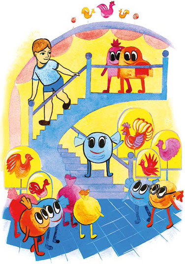 Карамельку заинтересовала история мальчика, и она согласилась помочь им. Она взяла разноцветного петушка и подошла к Мите.