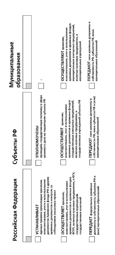 Полномочия государственных и муниципальных органов власти РФ в отношении архивного дела схематически показаны на рис. 1.