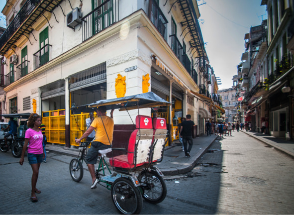 Этот бар на улице Обиспо найти очень просто, так как стены здания украшены элегантными щитами (картуш).