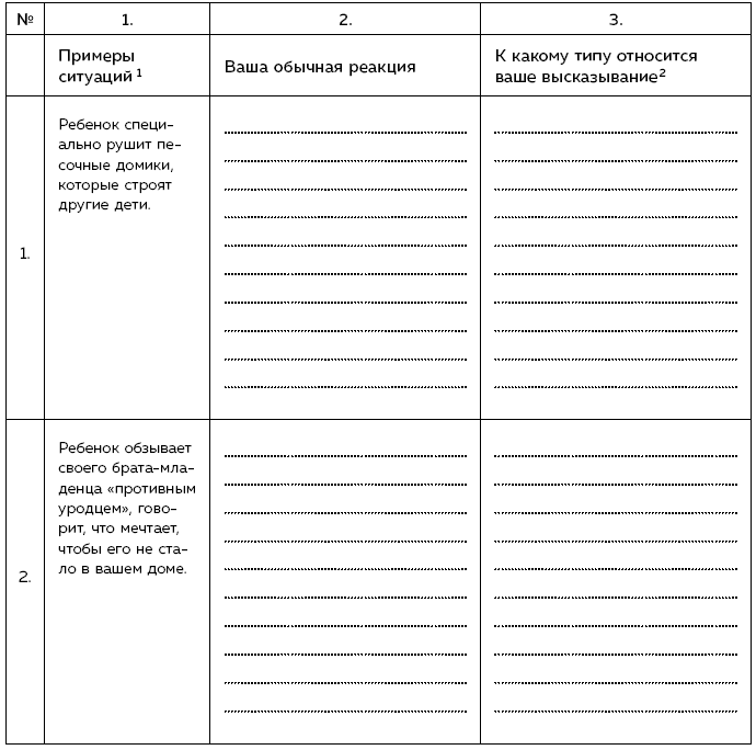 Перед вами таблица с рядом ситуаций. Внимательно прочитайте описание каждой. В графу 2 впишите те фразы, которые являются для вас типичными в подобных ситуациях.