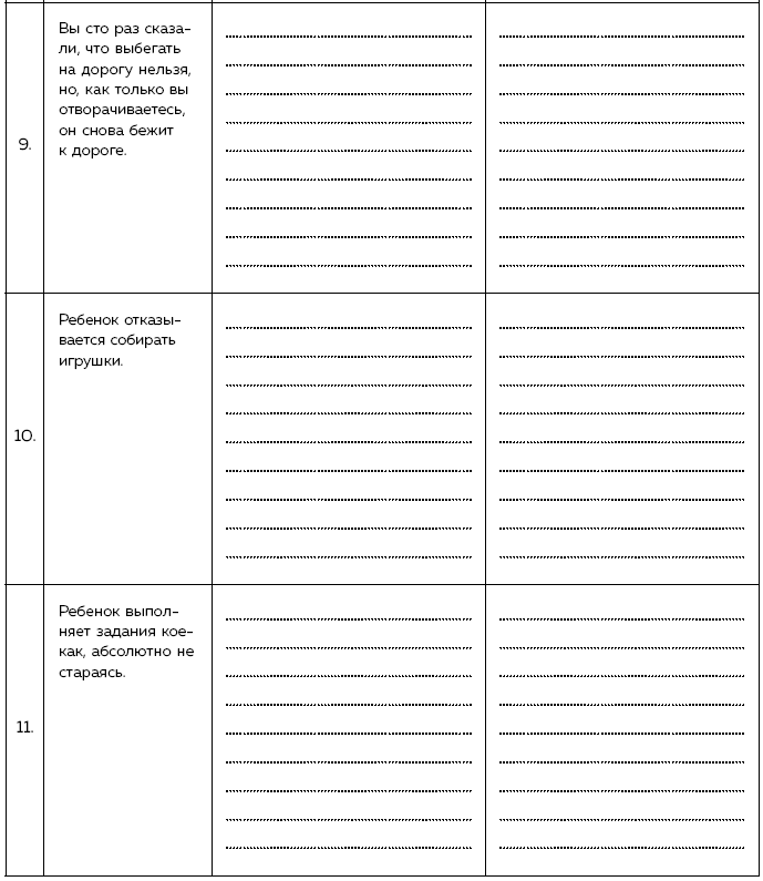 Заведите рабочую тетрадь, в которой вы будете делать записи, отслеживать свои действия, описывать совершаемые шаги, свои реакции и реакции ребенка на эти действия.
