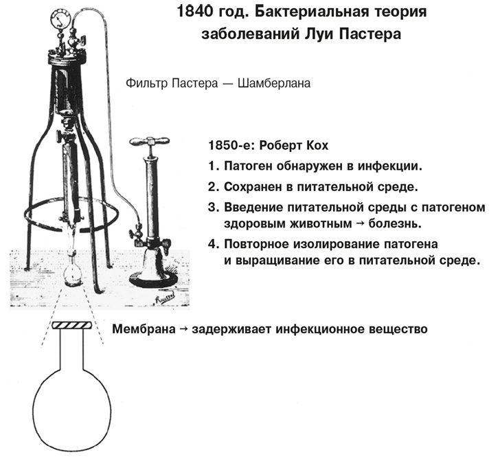 РИСУНОК 2.2. Разновидность фильтра Пастера – Шамберлана, присоединенного к ручной помпе, использовавшаяся в Институте Пастера к концу XIX века