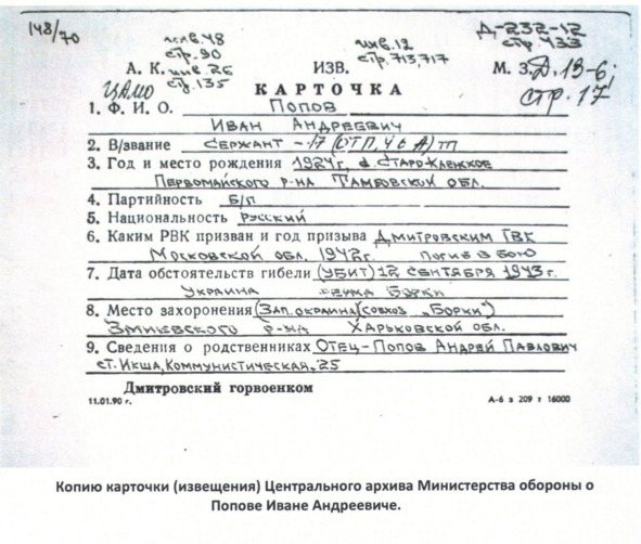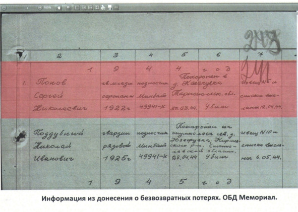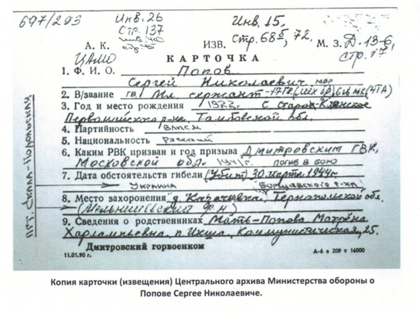 В 1941 году началась трагическая полоса в жизни страны и моей семьи в том числе – началась Великая Отечественная Война. Трое моих братьев и муж сестры, ушли на фронт. Два брата и зять погибли. Старший, немного не дожил до Победы, погиб в апреле 1945 г., младший, моряк срочной службы, служил в морской пехоте, погиб на Кавказе в Моздоке.