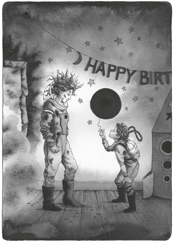 Харрисон протянул руку, взялся за верёвочку и подтянул шарик к себе. Он был кромешно-чёрным, словно на его месте кто-то вырезал из вселенной кусочек. Харрисон подул на шарик, чтобы посмотреть, как он отскочит назад, как шарику и полагается, но вместо этого тот подплыл чуточку ближе.