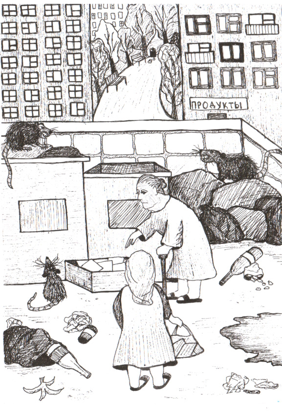 Они достали какие-то пожухшие овощи, переспелые бананы, подгнившие яблоки, коробку печенья, которую они могли бы отдать своим внукам, если бы те у них были. Но у них не было никого. Никого не осталось. И лишь государство, которое, по-хорошему, обязано обеспечить своим гражданам достойную старость, и то их бросило на произвол судьбы, заставив от безденежья побираться на помойках.