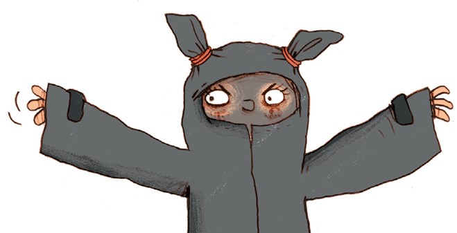 Она надела плащ, завязала на капюшоне, который всё равно был ей слишком велик, два узла, смахивающих на уши, затем покрасила лицо обуглившейся деревяшкой в чёрный цвет. И внимательно осмотрела своё отражение в новой садовой лопате. Видно было не слишком хорошо, но Матильда однозначно напоминала супергероя в образе летучей мыши. Ура!