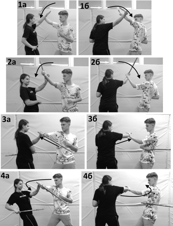 Рисунок 21. Действия в упражнении пунио дрилл с комбинированием техник «живой» и вооруженной руки