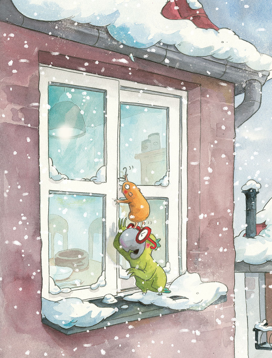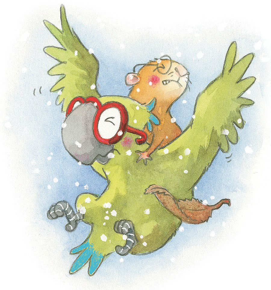 Снег быстро таял, но был таким сильным, что Никель и Хорн почти ничего не видели, пока летели домой. Даже когда морская свинка ухитрилась протереть свои очки о шёрстку, их тут же снова залепило снежными хлопьями.