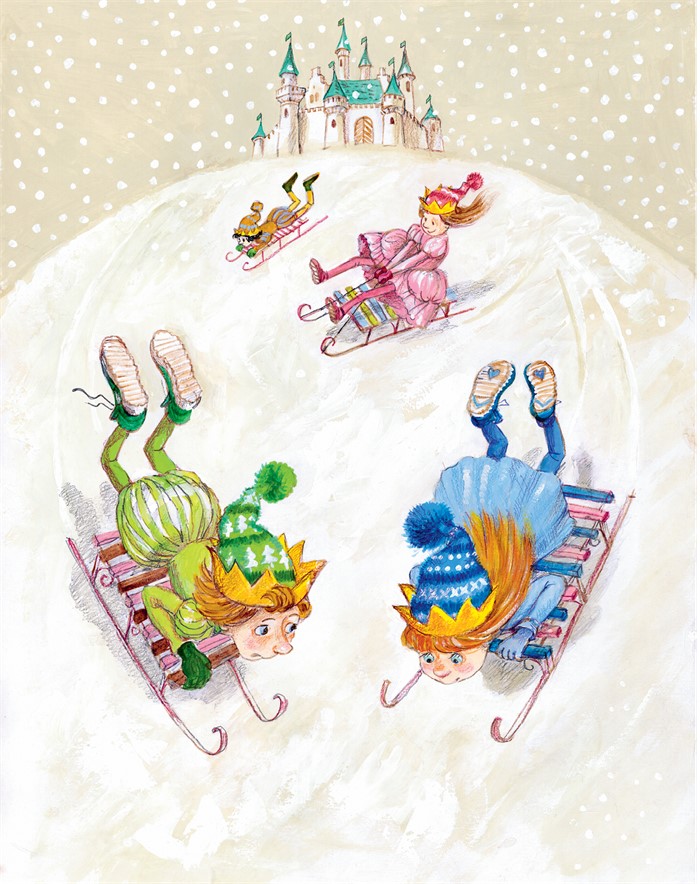 Принц радостно схватил свои любимые санки и побежал на самую высокую королевскую горку.