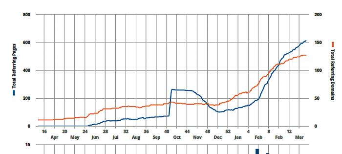 Рост ссылочной массы в целом должен быть естественным и постепенным. Покупка ссылок на ссылочных биржах малоэффективна и потенциально может привести к санкциям поисковых систем. Напротив, мотивирование посетителей делиться информацией имеет высокий эффект. Пример естественного роста ссылочной массы на региональном новостном ресурсе приведен на рисунке 13.
