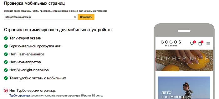 В Яндексе качество мобильной версии сайта влияет на ранжирование в мобильном поиске. Оценить качество страницы в Яндексе можно через Яндекс. Вебмастер.
