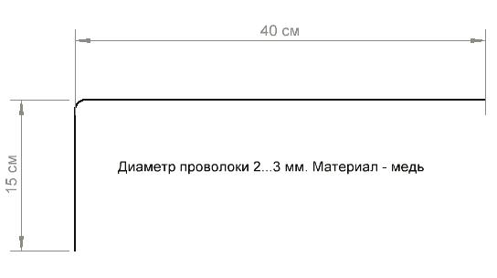 Рамки проще всего изготовить из медного провода диаметром I.. 2 мм. Провод может быть как голый, так и в лаке или ПХВ-изоляции. Лакированный провод применяется для намотки трансформаторов. Провод сначала выпрямляется, а затем сгибается под прямым углом. Ориентировочные размеры указаны на рис. 1.
