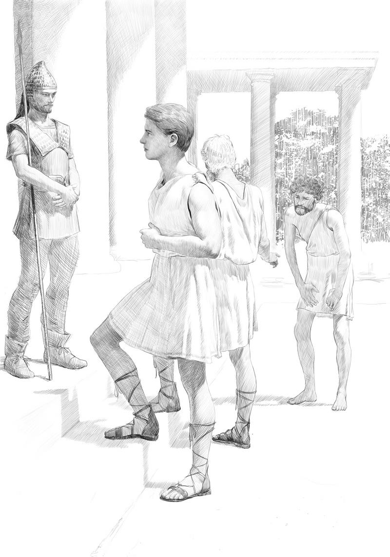 После ужина Ифигения отвела Алексея в его старую каморку. Тофон разрешил ему сегодня переночевать в своем доме. Но завтра Леша должен был подыскать себе новое жилище. Комната совершенно преобразилась после той памятной ночи, когда спартанец напал на него. Стены были покрыты свежей известкой. Новая прочная дверь теперь открывалась бесшумно. Пока хозяева ужинали, слуги успели обставить его старое жилище: ложе, небольшой стол с клисмосом и пара красивых, до краев заполненных маслом светильников. Комната стала почти уютной. Но все же какое-то едва ощутимое беспокойство не позволяло Алексею полностью расслабиться. Словно воспоминания о том вечере до сих пор отравляли его память.