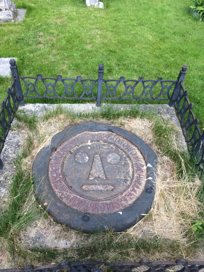Надгробье на могиле весьма странное на первый взгляд, сделано в виде железной испанской маски с пустыми глазницами. По краю этой маски расположилась змея, с хвостом во рту. На надгробье надпись: «Пермского исправника Девеллия дочь Таисия от роду 6 лет 11 месяцев скончалась в январе 1807 года».