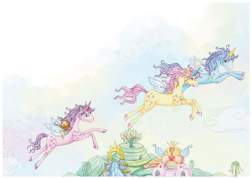 Кивнув, единорожки разбежались, чтобы взлететь. Сперва медленно, затем всё быстрее и быстрее неслись они по пёстрому лугу. Вот уже ветер свистел у них в ушах. Набрав скорость, они расправили крылышки небольшие, но сильные, отливающие у каждого своим цветом, и со стрекотом взвились в воздух. Ванилька, Розочка и Василёк пронеслись над Рифом мечты.