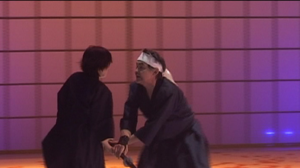 Кимоно, мечи и поклоны. Все это есть в сказке, которую показывают на сцене драмтеатра. Думаю, режиссер решил, что достаточно махания мечом, что бы рассказать про Японию. Мне показалось, что как раз размахивания мечами это дело десятое. В японской эстетики без этого много мелочей создающих настроение, создающих Японию.