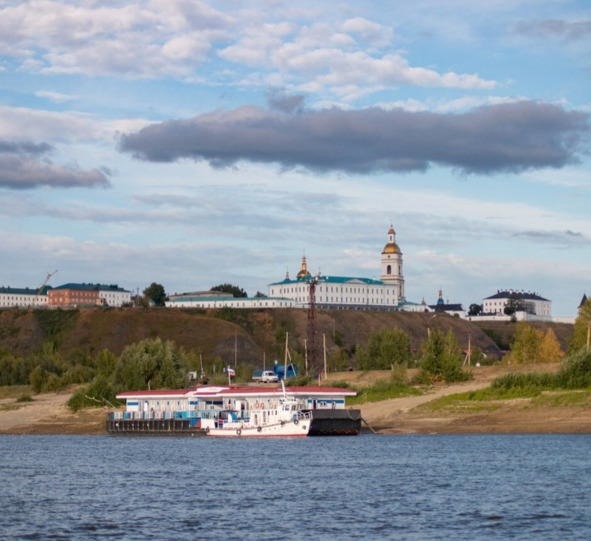 Вид с левого берега Иртыша на возвышающийся над рекой Тобольский Кремль неповторимая картина в любое время года. Сколько раз возвращаясь домой «из дальних странствий» я наблюдал этот пейзаж по пути из аэропорта в город. Из аэропорта ходил речной трамвай, который проплывал мимо широкого устья Тобола. Я всегда восхищался картиной двухцветной водной глади, когда делавший крутой поворот Иртыш прижимал своими светлыми водами тёмные словно болотные воды впадавшего в него Тобола.