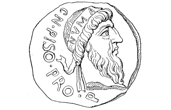 Портрет Нумы Помпилия на аверсе монеты Кальпурния Пизона