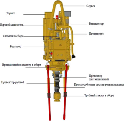 Основной функцией верхнего силового привода является вращение бурильной колонны с регулированием частоты при бурении, проработке и расширении ствола скважины, при подъеме/спуске бурильной колонны. Кроме того, он обеспечивает: