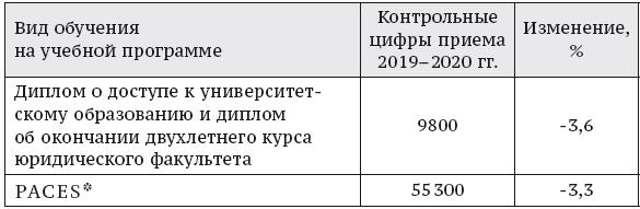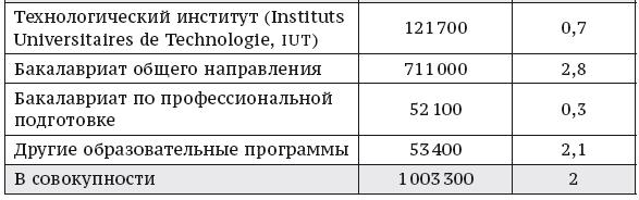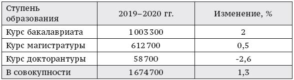 Таблица 1. Контрольные цифры приема во французские университеты по ступеням образования за 20192020 гг.[14]