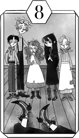 Милу одной рукой прижимала обезглавленное туловище тряпичной кошки к своему колотящемуся сердцу. Поблизости со скрипом открылась дверь и ударилась о распростёртое тело директрисы. Из-за двери показалась Лотта, посмотрела вниз и вскрикнула. Над её плечом замаячила голова Сема. Эг вылез из своего укрытия между шкафов. Фенна, по очереди вытащив наружу тощие конечности, выползла из-под комода. Её укушенная ладонь кровоточила.