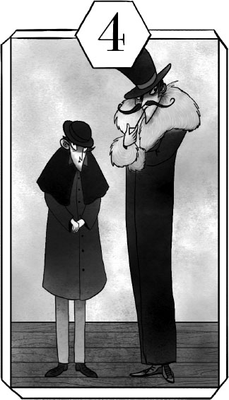 Теперь директриса не загораживала ей обзор, и Милу увидела двух мужчин, стоявших у камина. Тот, что повыше, щеголял в сером шерстяном костюме хорошего покроя, поверх которого было пальто, отороченное мехом. Голову незнакомца увенчивал высокий цилиндр. Лицо почти наполовину скрывали огромные усы: длинные завитки тянулись из-под носа и доходили до густых бакенбард. Почти на каждом пальце у него блестело кольцо, а изо рта торчала курительная трубка. Мужчина помоложе, наверное, едва ступивший в пору зрелости, был одет попроще в чёрные брюки и шерстяное пальто. Шляпу-котелок он надвинул так низко, что почти вся физиономия оказалась в тени, выставив на всеобщее обозрение только заострённый подбородок.