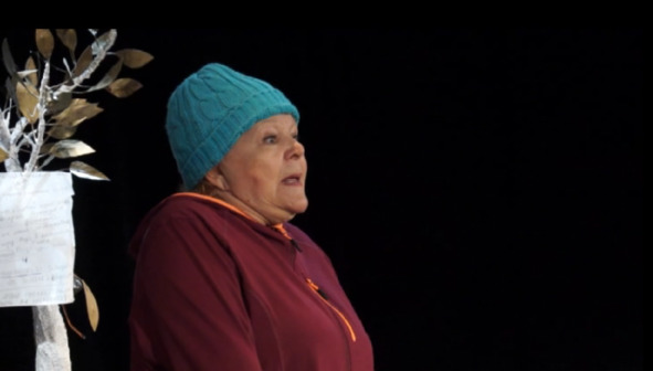 Актриса на сцене одна и проживает две жизни, ведет диалог мальчика и дамы в возрасте. Дама мудрая, чуткая, с трудом сдерживающая слезы, но она честная, предельно честная с ребенком, потому что в этом ребенке бесконечная скорбь.