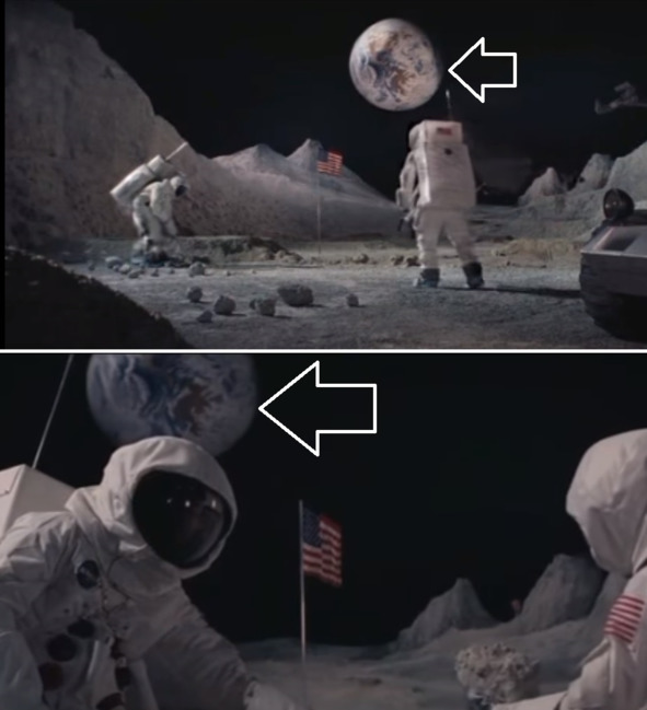 Выглядит реалистично. Не отличить от снимков в шоу «Аполлон». И не нужно устраивать пляски вокруг темы про цветные снимки Земли с помощью спутникового цветного ТВ. Все это можно выполнить при помощи картона и красок хорошим художником. Он это все может нарисовать, используя черно белые снимки американских АМС. Вся демагогия анонима полностью рушится. А его придирки к тексту книги становятся необоснованными. Такие мелкие претензии аноним, предъявляет, например, к информации о цветных снимков «Орбитер». Его не смущает, что снимки от аппаратов были черно белые: «На стр. 92 А. И. Попов полагает, что Орбитеры могли снимать только восходы Земли или только заходы, но не то и другое».
