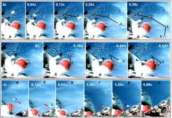 В действительности, американская мифология НАСА называет величины горизонтальной и вертикальной скорости падения на «Луну» «ЛМ» из шоу «Аполлон». Эти цифры называются в пределах 23 метра в секунду. Это порядка 711 километров в час. Падение конструкции на неровную, неподготовленную поверхность с такими скоростями все равно должны были вызвать падение «ЛМ» на бок. Последующее разрушение пепелаца НАСА будет неизбежным. Но аноним выбрал другие «аргументы»: «Вот для такой ситуации и было, как раз предусмотрено аварийное возвращение на орбиту. Это и был тот самый «парашют», о котором, похоже, умолчал А. И. Попов. Если двигатель посадочной ступени по той или иной причине прекратил бы работу, то астронавты должны были, разделив ступени ЛМ и включив двигатель взлетной ступени, вернуться на орбиту, где их ждал КСМ, основной корабль, затем с ним стыковаться. Испытание такого «парашюта» и было произведено в полете «Аполлона-10» на орбите Луны. Так что А. И. Попов не прав». [1] Аноним хитрил и изворачивался. Речь шла об испытаниях «Лунного модуля» на Земле. Их не было и все разговоры о мифических испытаниях «ЛМ» на орбите Луны совершенно бессмысленные. Аноним имел еще одну претензию к тексту книги о Лунном обмане США, по странному событию: «В главе 7 (стр.102103) А. И. Попов считает, что в кадрах полета «Аполлона-9» вокруг руки астронавта Скотта летает «белый лоскуток».