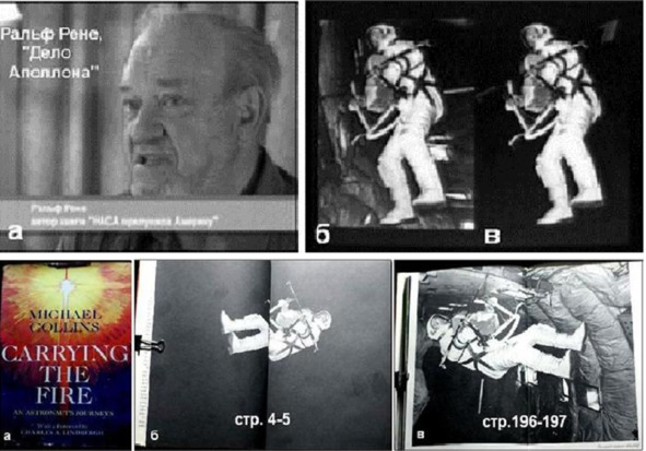 Еще одна претензия анонима касается упоминания книги Ральфа Рене, который обнаружил обман в шоу «Джемини». Аноним так объяснил этот казус с фальшивкой: «Далее (стр.104) А. И. Попов приводит цитату из книги Рене о том, что в книге Коллинза вместо фотографии выхода в открытый космос приведена фотография тренировки в самолете. Но сам же Рене и приводит объяснение этому Коллинз потерял фотокамеру во время выхода. Факт этот известен, о нем писали в прессе.