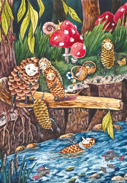Два раза друзей просить не пришлось. Одним движением они подняли спасателя и спасённого на сук, после чего помогли Алёше дойти до берега. Обессиленный шишок рухнул на землю, друзья окружили его, радостно гомоня.