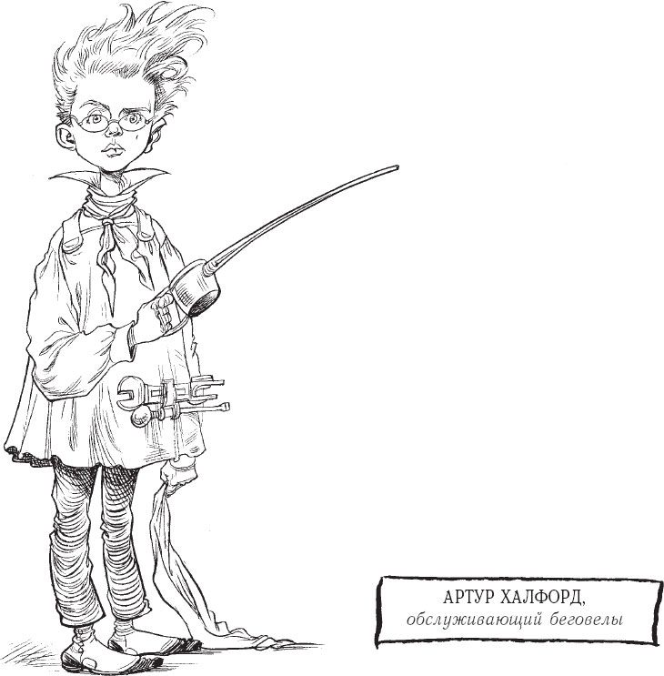 Ада неоднократно видела механиков беговелов на территории поместья Грянул-Гром-Холл, но, как и кухарки, они никогда с ней не заговаривали. Артур Халфорд оказался коротышкой с непослушными вихрами и в очках с проволочной оправой. Он носил промасленную спецовку с притороченными к ней разнообразными инструментами. На шее у него был повязан щегольский «готический» галстук.